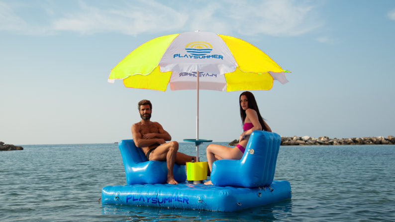 Unsere exklusive Schwimminsel verwandelt jeden Sommertag in ein Erlebnis voller Entspannung und Spaß. Mit ihrem komfortablen Design, den integrierten Sesseln und dem stylischen Sonnenschirm bietet sie dir und deinen Freunden ein schwebendes Wohnzimmer mitten auf dem Wasser. Egal ob im Pool, am See oder am Meer – genieße die Sonne, das sanfte Schaukeln der Wellen und pure Sommer-Vibes.